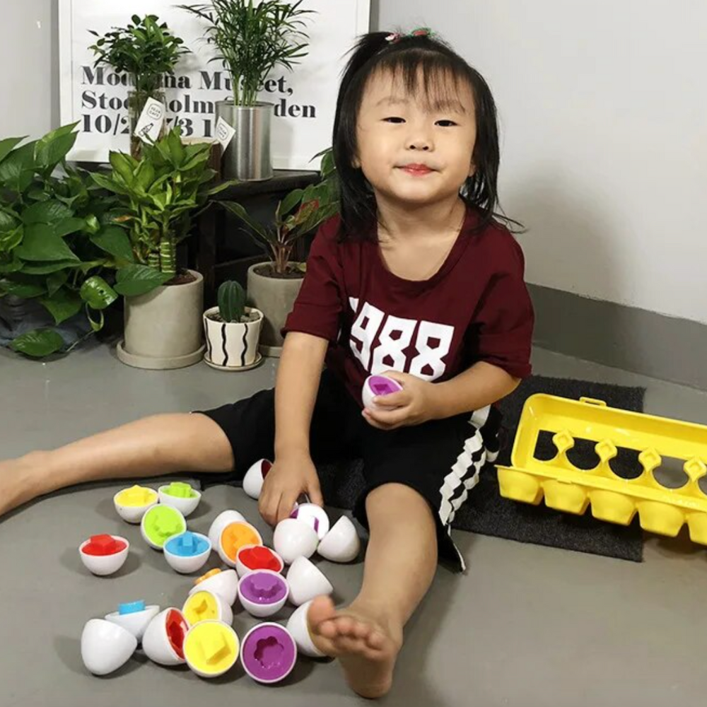 • Match and Learn: Encourage your child to match each egg with its corresponding half by exploring the different shapes and colors, enhancing their problem-solving skills.