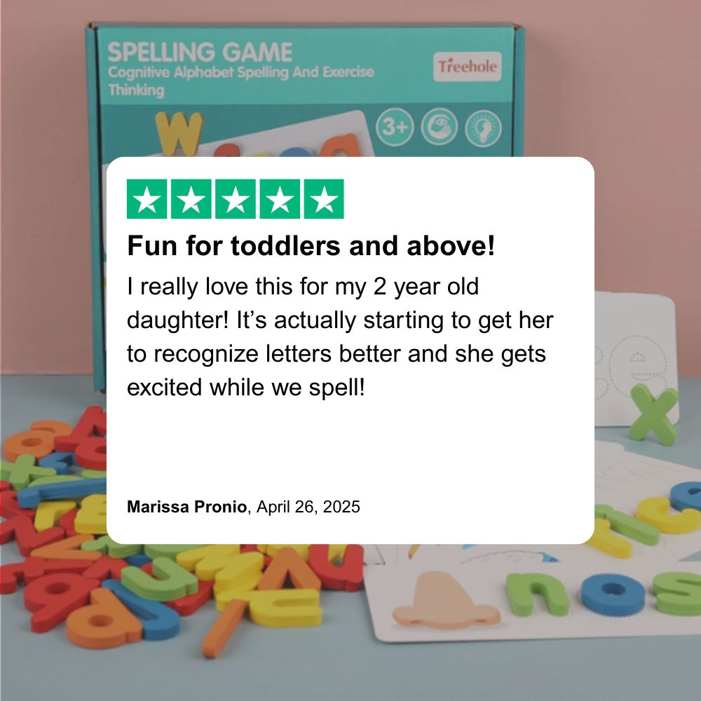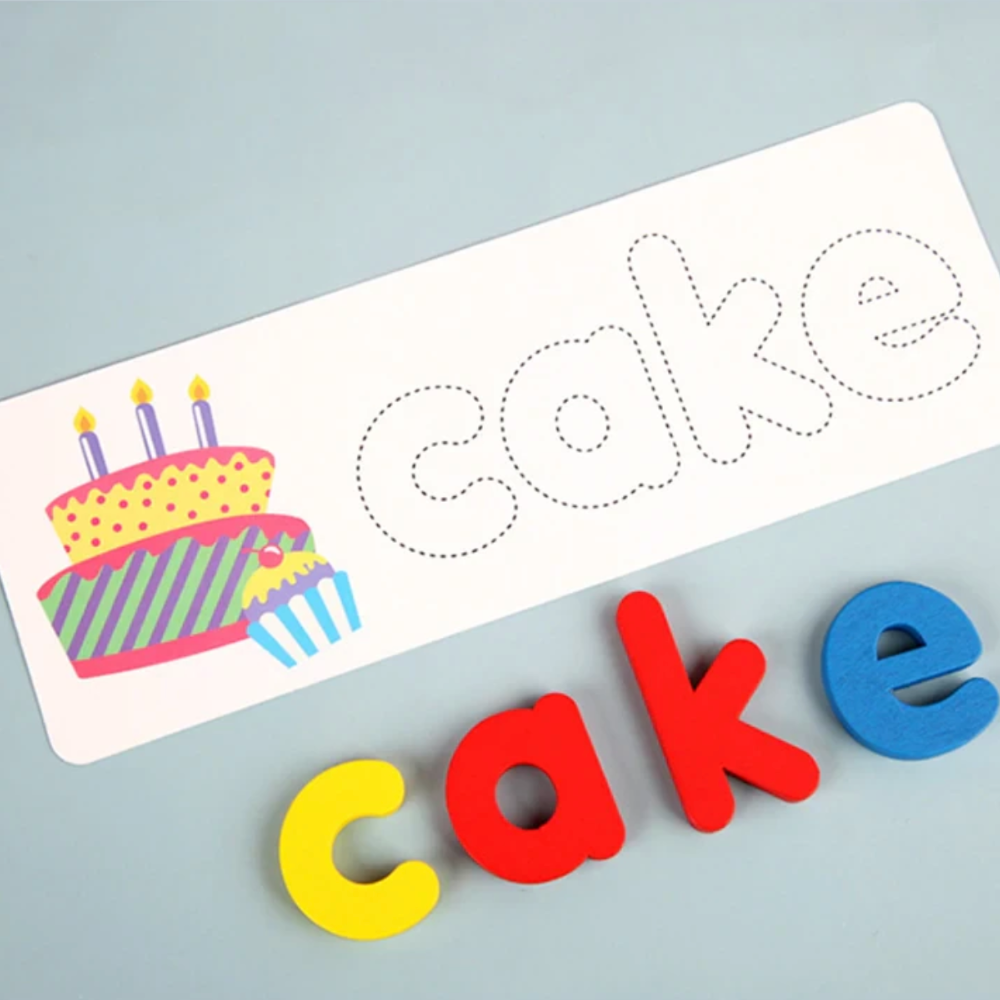 It’s a much more engaging and fun way for kids to learn spelling. The best thing is even 3-year-olds can get the hang of it before they know how to use a pen. The secret is in the carved-out letters and image cards.
